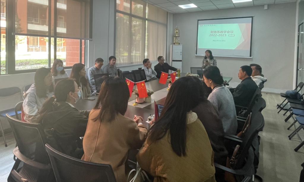首先,姚永红老师分别从日常教学管理、专业建设计划、科研工作、教学评估等方面进行了汇报。她强调老师们在学期初要做好开学和日常教学准备等工作,包括集中考试安排、试卷复核、教学资料的完善、同行听课学习、省级一流课程建设等。姚老师提出财务管理专业建设应从教研室建设、特色班建设、课程建设、思政教学、竞赛活动等方面来抓。