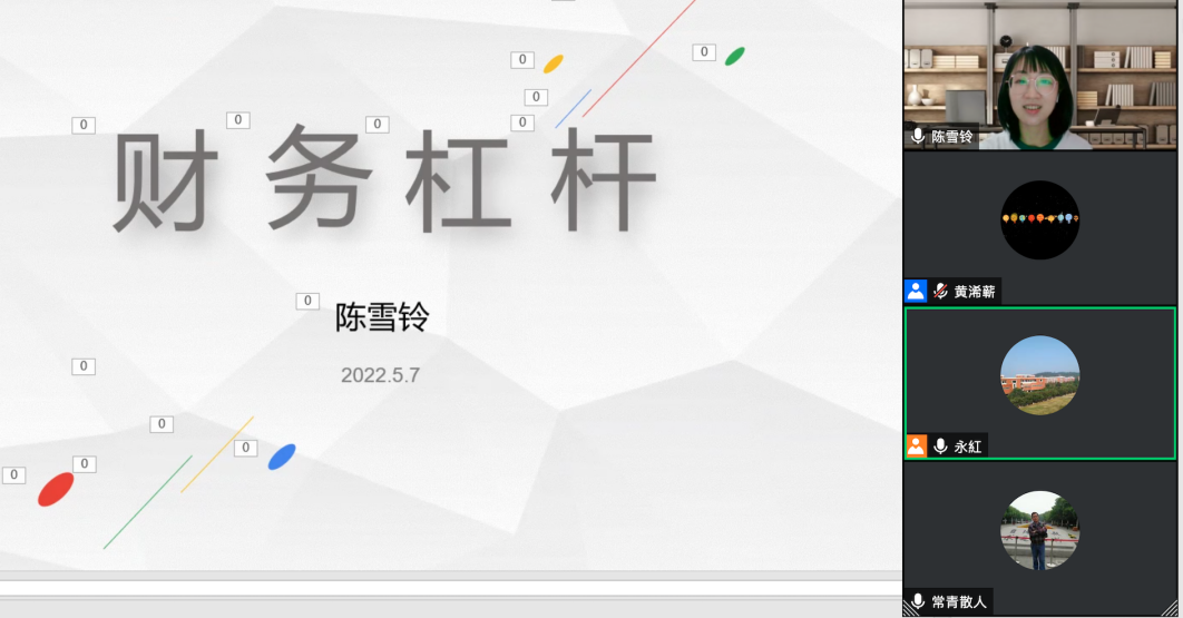 陈雪铃老师试讲的是《财务管理》课程中的“财务杠杆”,陈老师通过政府工作报告引入该知识点,并结合丰富多彩的图片对财务杠杆的相关知识进行了细致的讲解,图文并茂,通过拓展阅读材料,使得学生能够在学习该知识点的同时,还能够掌握实际运用。