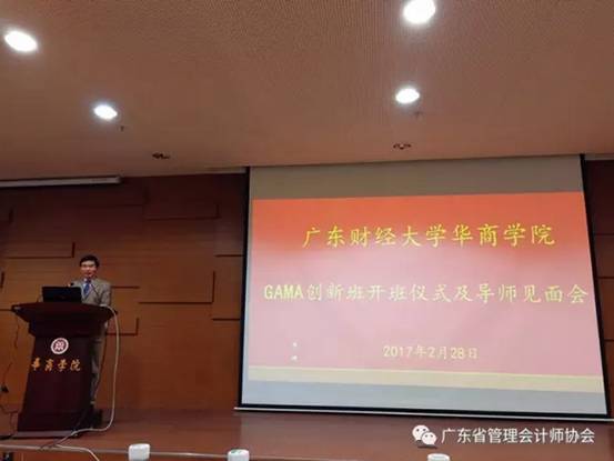 2017年2月28日上午,春暖花开,阳光明媚。广东省管理会计师协会与广东财经大学华商学院合作的GAMA创新班开班仪式暨导师见面会在华商学院学术报告厅隆重举行。GAMA创新班导师王华、林斌、胡玉明、刘中华教授和蔡祥、漆江娜、聂新军、刘善敏、张程睿副教授,华商学院陈玉川院长、郭银华副院长和williamhill英国官网马玉珍院长出席了开班仪式。开班仪式由郭银华副院长主持。