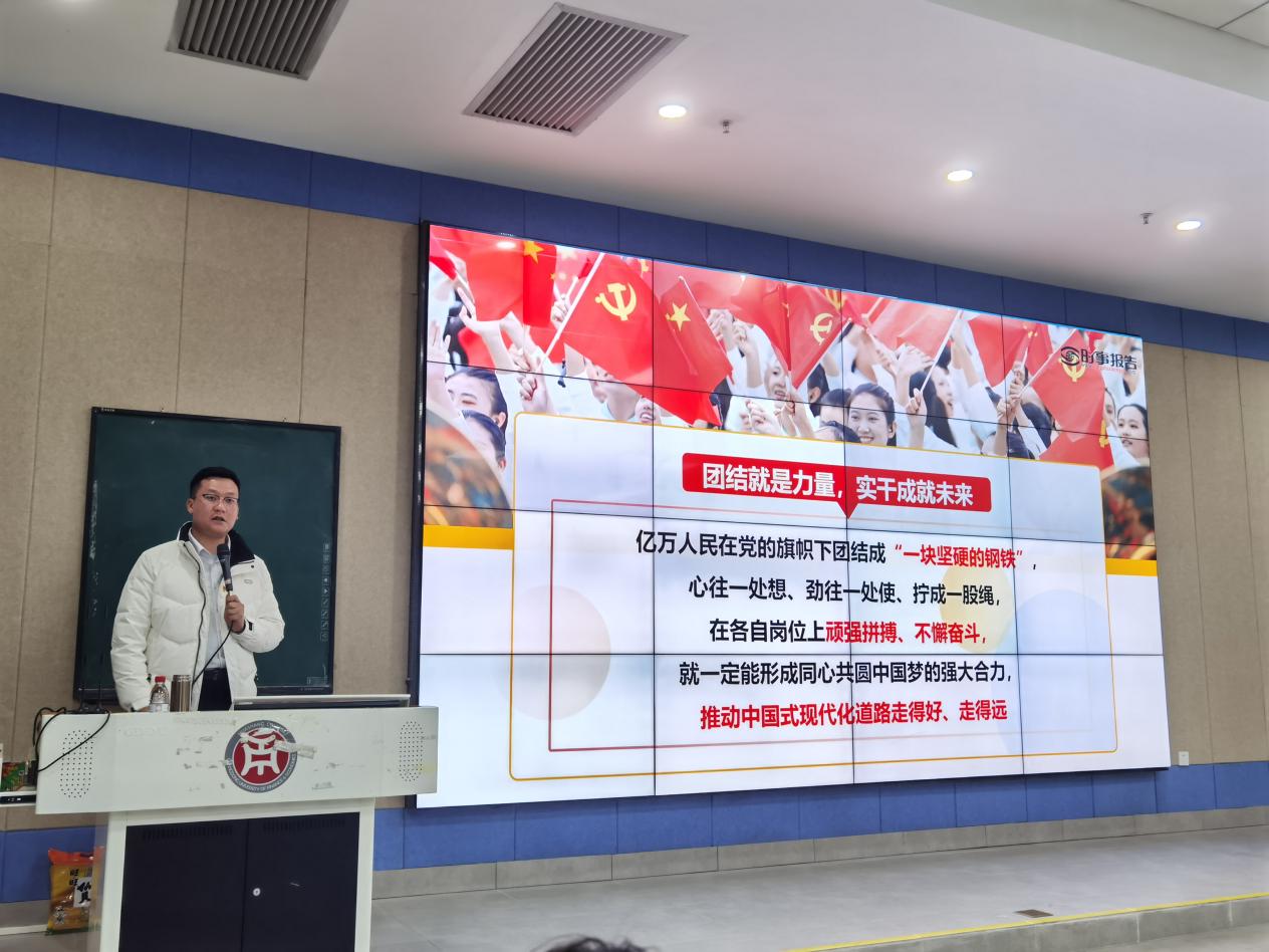 陈洋广副书记在课上向同学们指出我国新时代十年伟大变革的重大意义,在党的二十大报告中指出:“新时代十年的伟大变革,在党史、新中国史、改革开放史、社会主义发展史、中华民族发展史上具有里程碑意义。”这是党在革命性锻造中更加坚强有力的十年;这是中国人民焕发出更为强烈的历史自觉和主动精神的十年;这是实现中华民族伟大复兴进入了不可逆转的历史进程的十年;这是科学社会主义在二十一世纪的中国焕发出新的蓬勃生机的十年。