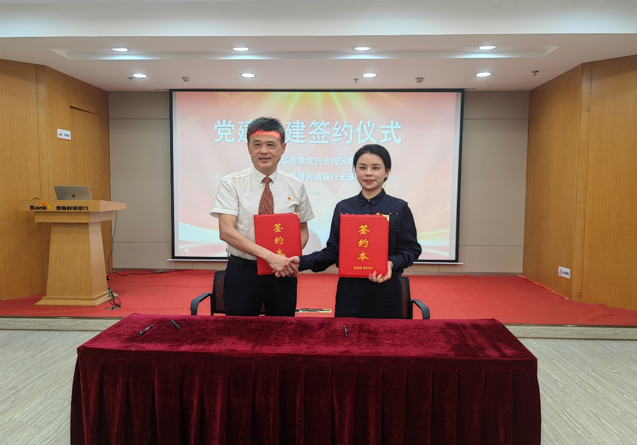 苏宁书记和泮乐行长分别代表校银双方签署了《党建共建协议书》,希望全面推动校企合作党建联动,通过“联合开展主题党日活动、联合组织红色研学活动、联合开展学习交流活动、联合开展专题党课教育、联合开展志愿服务、联合开展扶贫帮困活动和联合开展校内金融知识宣传教育”等形式,提升学生综合素养,助力学生高质量就业。