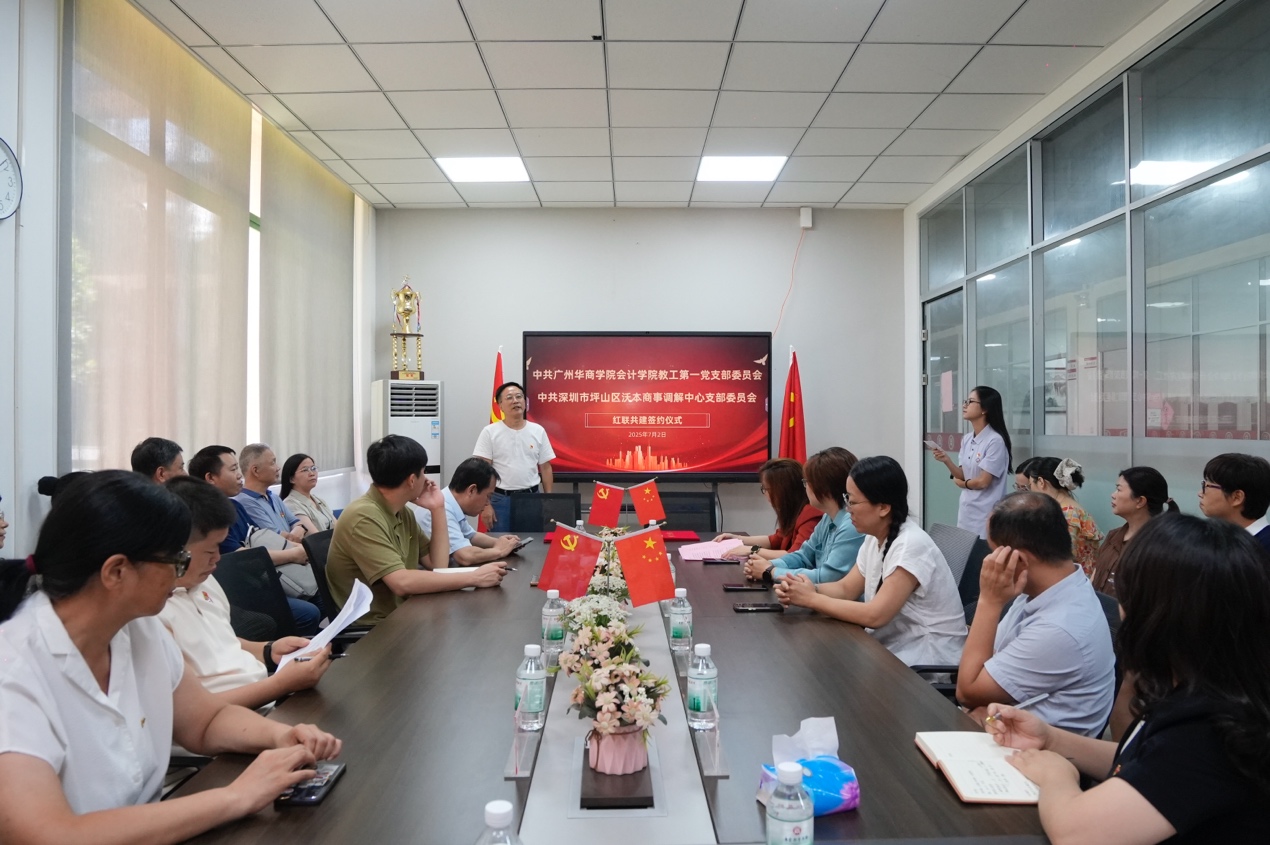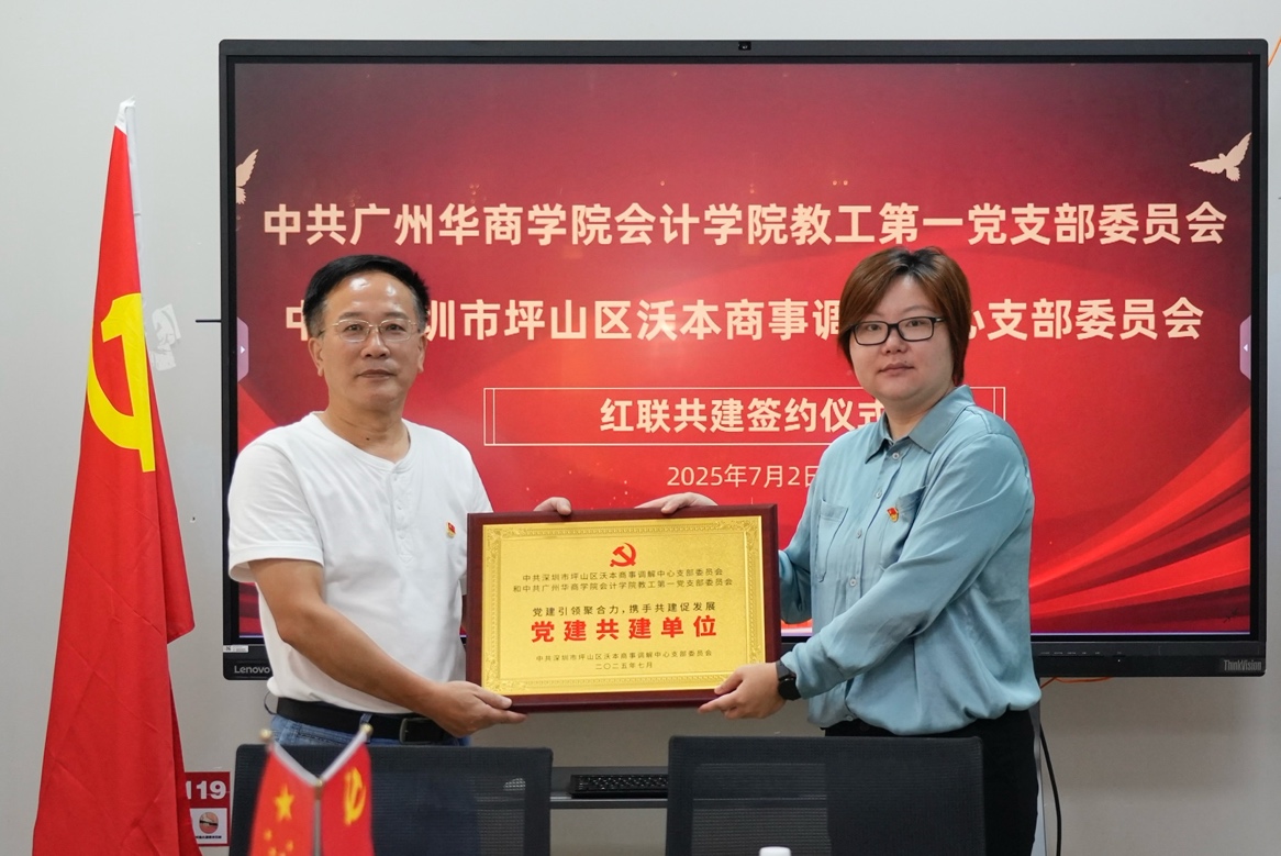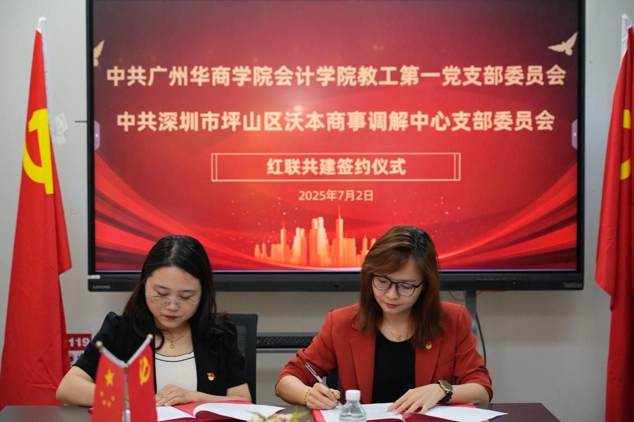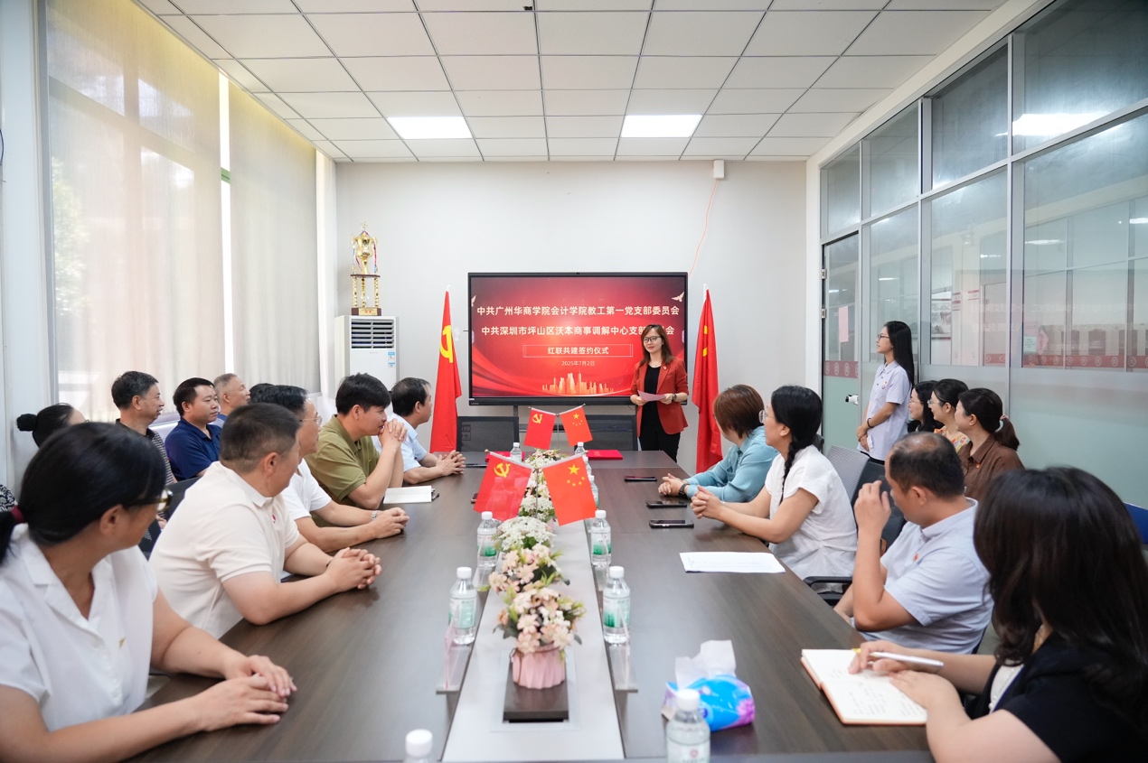 为积极响应新时代党的建设总要求,以党建为“红线”,串联起“产”与“教”两端,2025年7月2日上午,中共williamhill英国官网,英国威廉希尔官网教工第一党支部委员会与中共深圳市坪山区沃本商事调解中心支部委员会在williamhill英国官网,英国威廉希尔官网会议室隆重举行了党建结对红联共建签约仪式。深圳市坪山区沃本商事调解中心理事长曾丽群、正盈集团总经理程斌,以及学校纪检办主任、党办副主任黄秋铭,williamhill英国官网院长姚凤民、党委书记刘善球、副书记陈少鸿,副院长周书域、教工第一党支部书记陈蒙梦等人共同出席会议。会议由刘心馨主持。