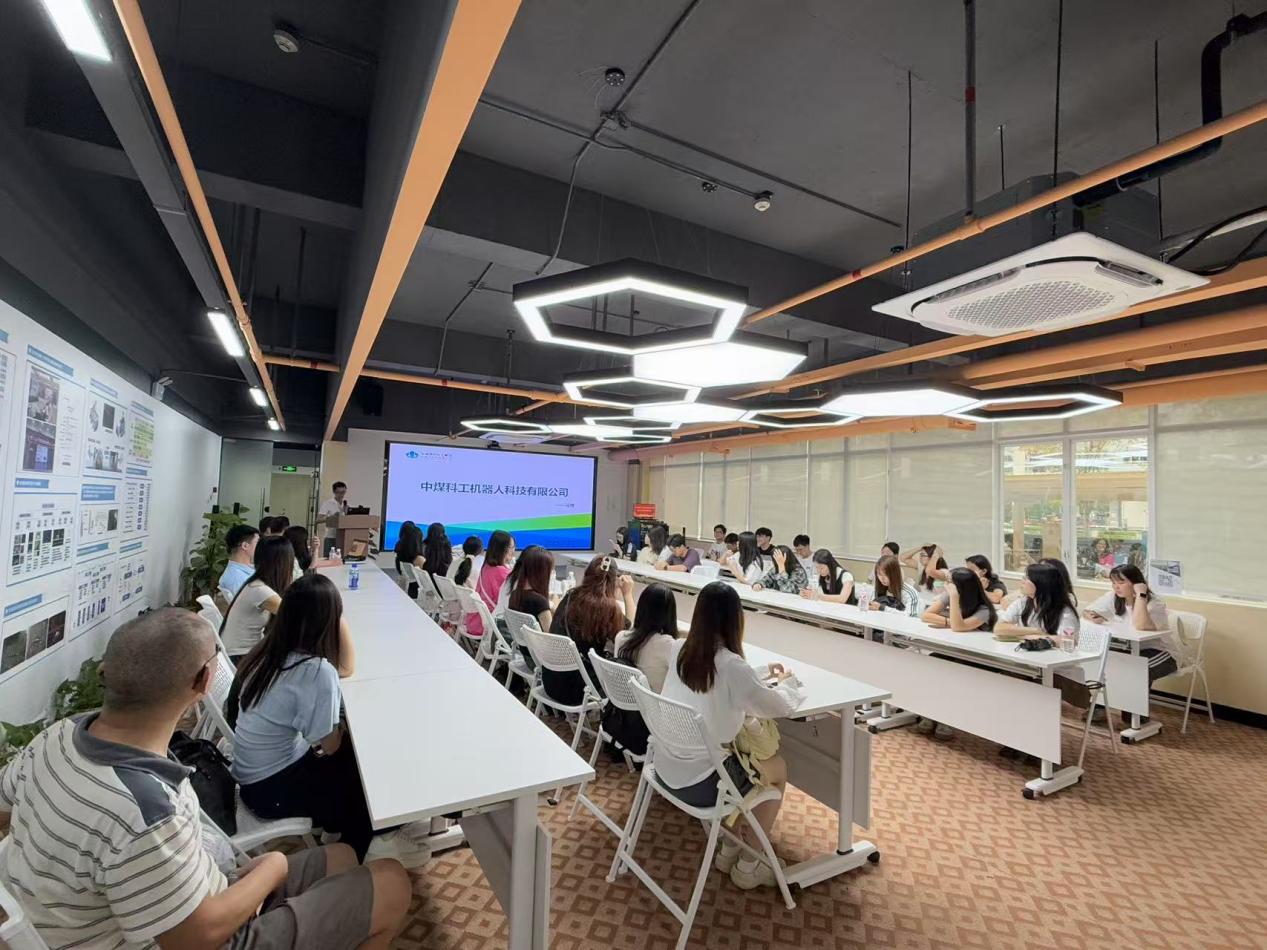 在中煤科工机器人科技展厅,中试基地马博副主任与人事部杨敏经理向师生介绍了公司情况,让师生系统了解了中煤科工机器人公司的成长历程与战新产业的孵化路径。作为中国煤炭科工集团的全资子公司,企业从2012年特种机器人事业部起步,历经十年技术积淀,已发展为拥有百余项专利、主导制定19项行业标准的国家级高新技术企业,这背后是无数科研技术人员攻坚的奋斗。当然,企业的成长也有审计的支持,从机器人研发预算控制到产业链协同成本审计,每一个技术突破背后都贯穿着资源优化配置的审计逻辑,学生们在此刻也能体悟到审计思维在技术研发中的体现。