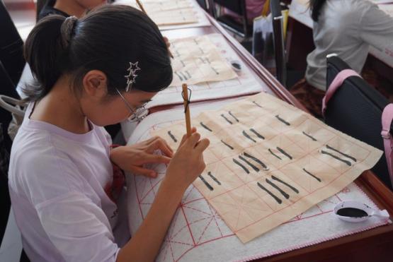 从简单的笔画练习,到逐渐尝试书写完整的汉字,他们的专注令人动容。在这个数字化的时代,能静下心来,用毛笔书写汉字,感受笔尖与宣纸的摩擦,体会汉字的韵味,是一种难得的体验。一笔一划间,传统文化的种子也在他们心中悄然种下,原本歪歪扭扭的字迹慢慢变得工整有力。他们在反复练习中培养专注力、观察力与对传统文化的认同感,让笔墨成为连接古今的桥梁。