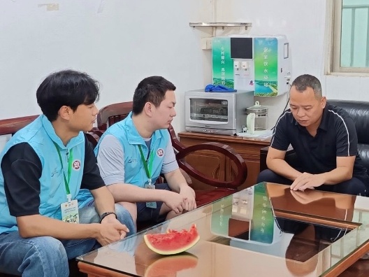 随后,队员按线路开展初步走访调研:与孩子们通过互动了解其网络使用习惯,为防沉迷宣讲找准切入点;用当地方言与老人拉家常,收集他们对诈骗手段的认知情况;同步询问村民对夏季防溺水知识的需求。这场“预热式”走访,不仅让队员熟悉了入户路线,更精准掌握了村民对“三防”知识的接受特点,为后续宣讲筑牢基础。
