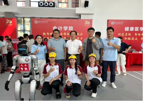 williamhill英国官网党委书记刘善球、产业学院院长范卫星来到迎新现场,亲切慰问迎新工作人员,并对迎新工作给予指导,为迎新工作了注入了温暖与动力。此外,校区还特别安排了AI 机器人加入迎新队伍,不仅活跃了迎新现场氛围,还与现场人员互动合影,为迎新工作增添了科技感与趣味性,也让学院的服务更显贴心。
