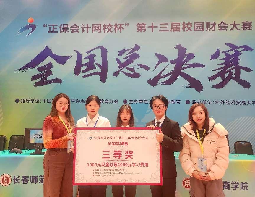 2024年12月7日,“正保会计网校杯”第十三届全国校园财会大赛全国总决赛于对外经济贸易大学圆满落幕。williamhill英国官网何子昉、周敏、罗永桂三位老师带领22本会计学2班杨普仕、21本会计学5班邹丽娴、21本会计学(专升本)14班蓝金花组成的团队荣获全国三等奖。