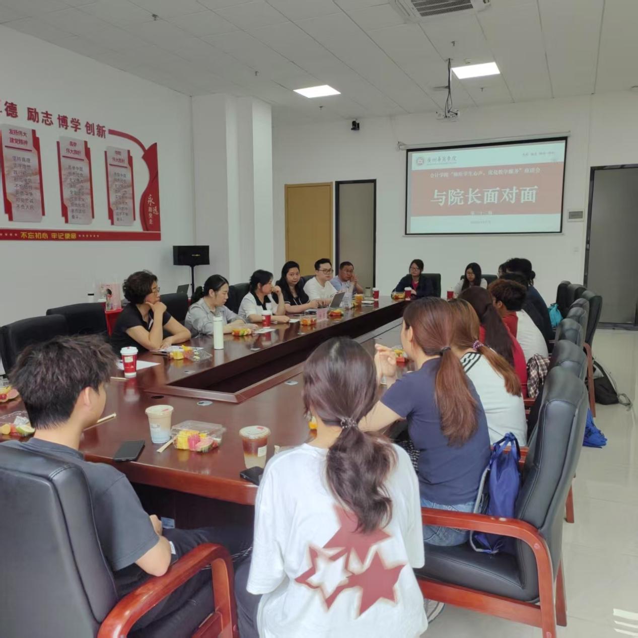 交流环节中,杨旻着重向同学们了解各课程在教学中存在的问题和双学位学习存在的困难。学生代表踊跃发言,就“cpa课程设置”、“专业课程与实践衔接”“跨校区学习资源获取”“学习生活环境优化”等疑惑向学院领导请教。座谈会在热烈交谈中持续进行一个小时。