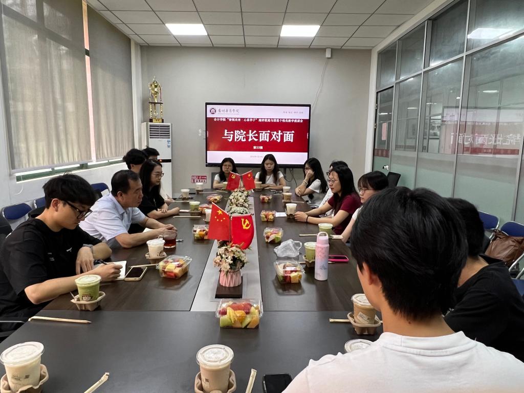 学生代表认真聆听、积极互动。会后,同学们纷纷表示,通过此次交流,对学院发展规划和个人学业发展路径有了更清晰的认知,未来将以实际行动积极响应学院号召,主动参与学风建设,为营造优良学习氛围贡献力量。此次 “与院长面对面” 活动有效搭建起师生沟通交流的桥梁,对推动学院学风建设、助力学生成长成才,以及促进学院教学高质量发展具有重要的现实意义。