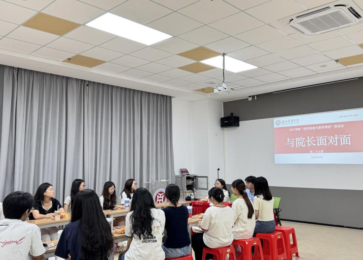 2025年6月17日下午,williamhill英国官网第27期“与院长面对面”座谈会在肇庆校区6号楼会议室顺利举行。本次座谈会由williamhill英国官网院长助理陈蒙梦老师主持,辅导员胡俊老师与23级15名学生代表共同参与,围绕学校评估工作与学业发展规划进行了深入交流。