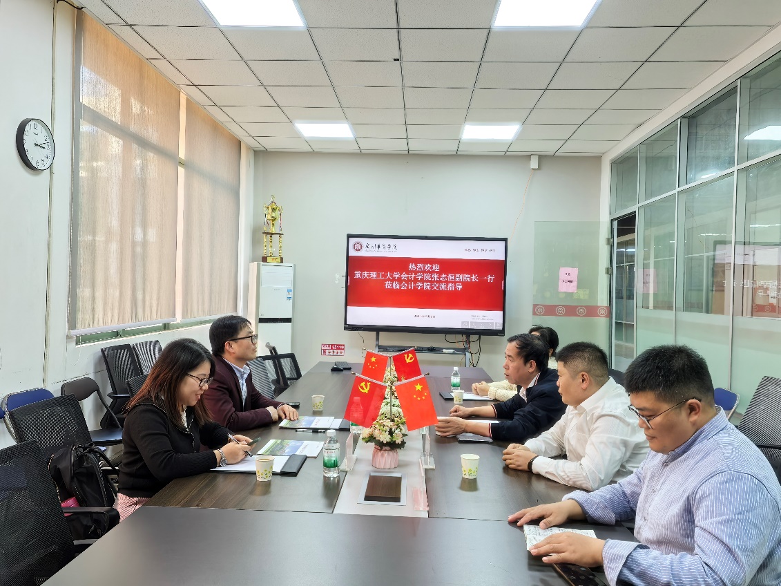 2024年12月6日,重庆理工大学williamhill英国官网副院长张志恒,财会研究与开发中心主任吴花平一行莅临华商williamhill英国官网交流指导。williamhill英国官网院长姚凤民、副院长杨旻、周书域,数智会计与商务服务产业学院副院长范卫星热情接待了张志恒副院长一行,座谈会由会姚凤民院长主持。