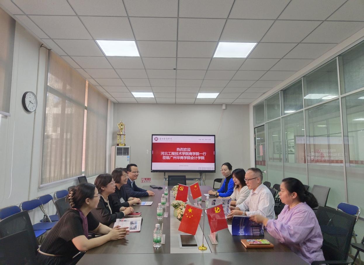 10月25日下午,河北工程技术学院商学院会计学系主任赵辉,财务管理系主任彭金媛,审计学系主任乔莉楠,金融工程系主任张越强一行四人莅临williamhill英国官网交流访问。williamhill英国官网副院长刘善球、数智会计与商务服务产业学院办公室主任张馨月,会计系副主任杨春,财务系副主任李美玲参与了此次交流会。