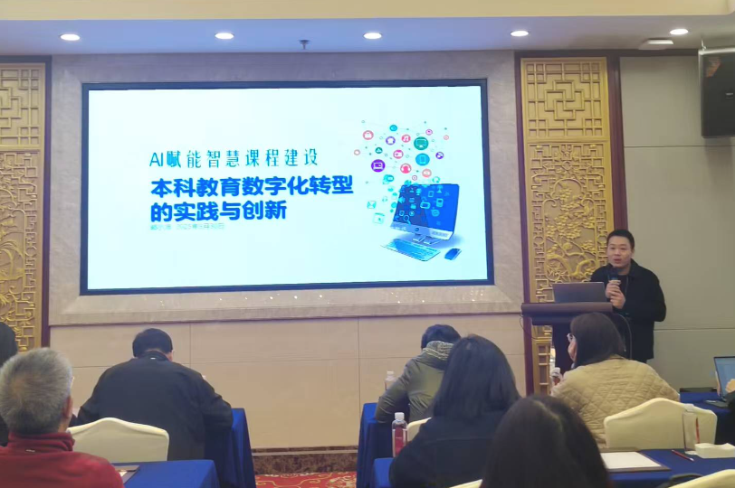 厦门网中网有限公司郭小沛总监以“本科教育数字化转型的实践与创新”为主题,通过讲述会计教育三个变革阶段,结合AI与知识图谱的课程开发逻辑,现场演示了AI技术在教案撰写、智能出题、教学评价等多个教学场景的应用,郭总提出数字化转型不仅是技术的升级,更是教学理念的革新。教师应主动适应新技术,将其转化为提升教学质量的有效工具。