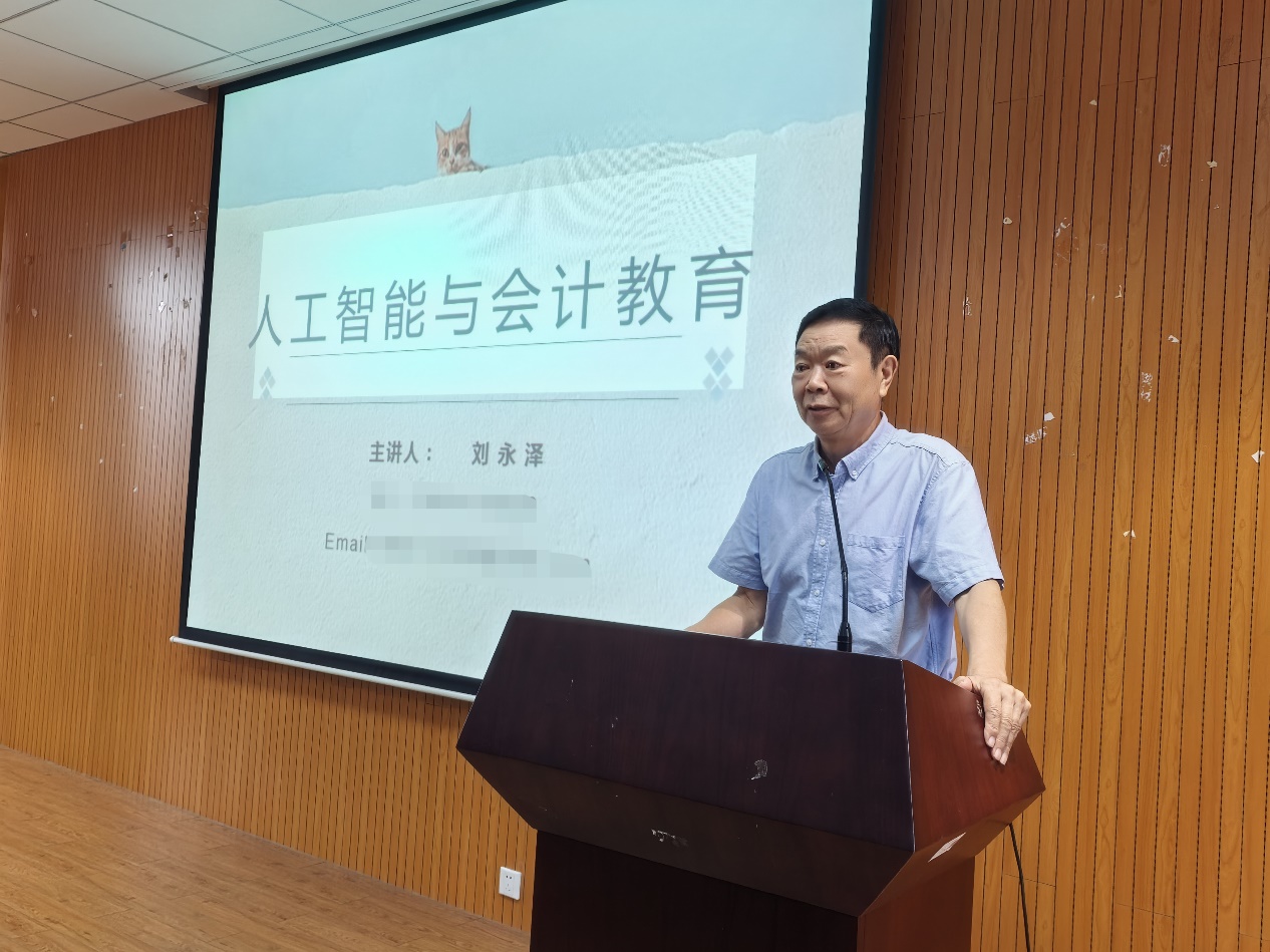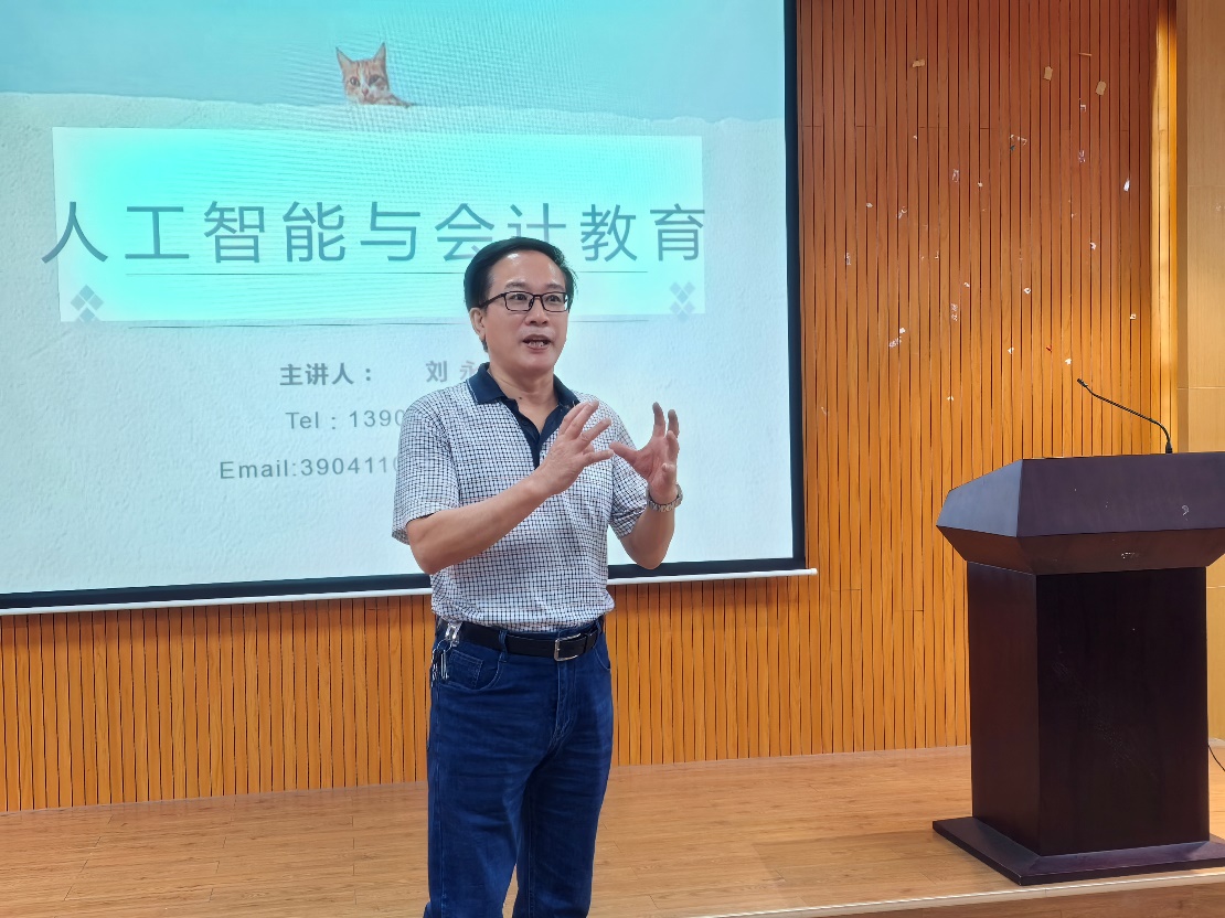讲座最后,刘教授鼓励在场的教师积极拥抱人工智能带来的变革,通过自我革命来保持会计专业的活力和竞争力。他的观点引发了在场听众的深思,为会计教育的未来发展提供了宝贵的思路和方向。