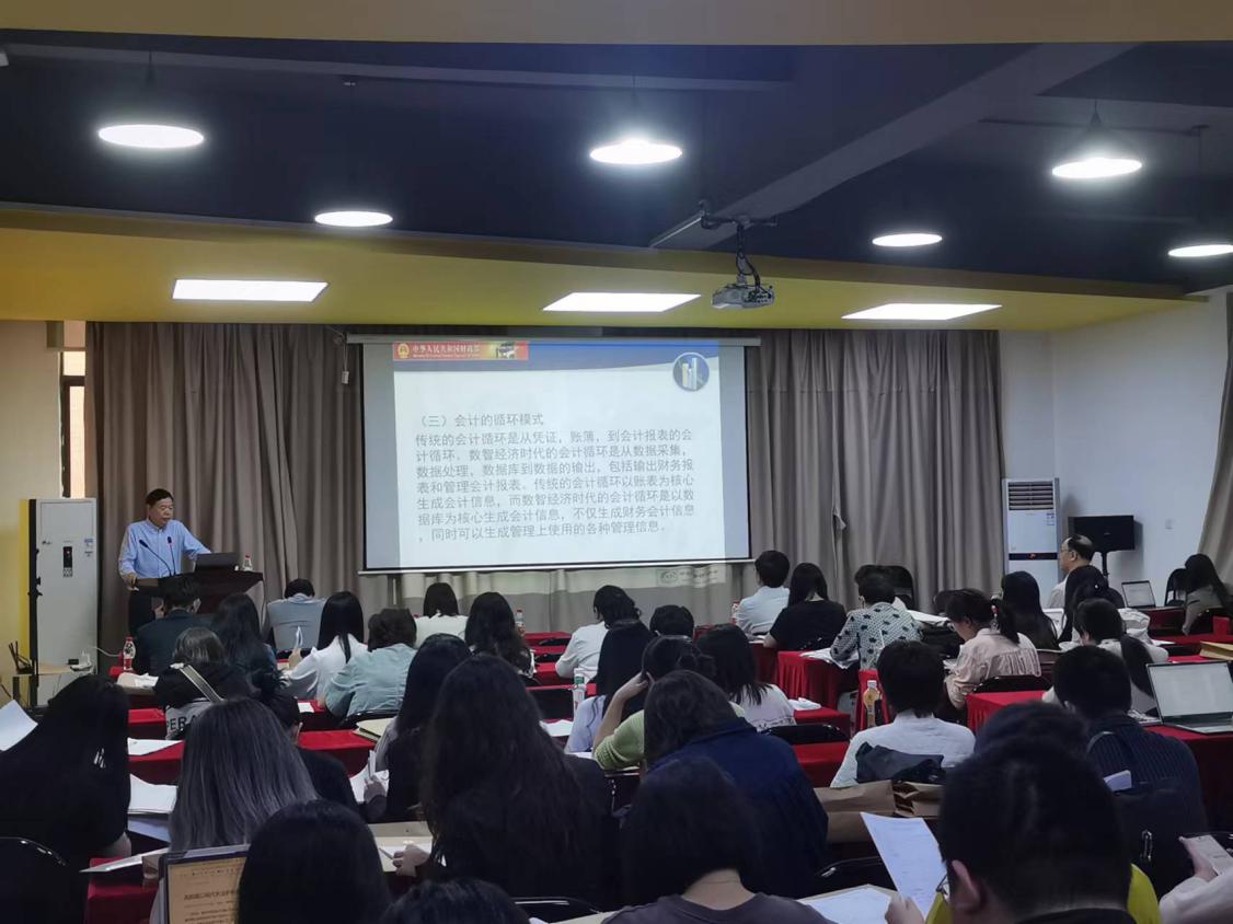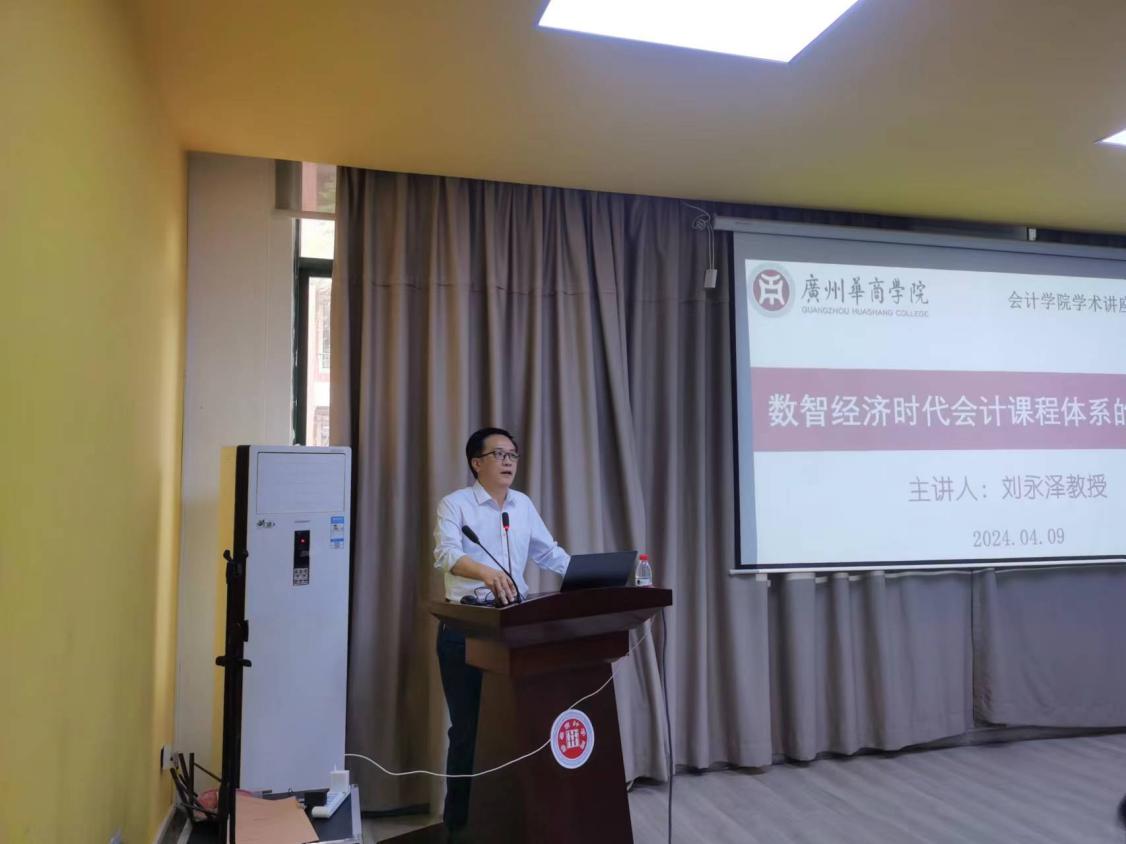 2024年4月9日下午2:30,中国会计学会原副会长,中国会计学会会计教育专业委员会原主任、原东北财经大学williamhill英国官网院长、博士生导师、我校特聘教授刘永泽教授在williamhill英国官网报告厅为williamhill英国官网教师作了题为《数智经济时代会计课程体系的构建》学术讲座。