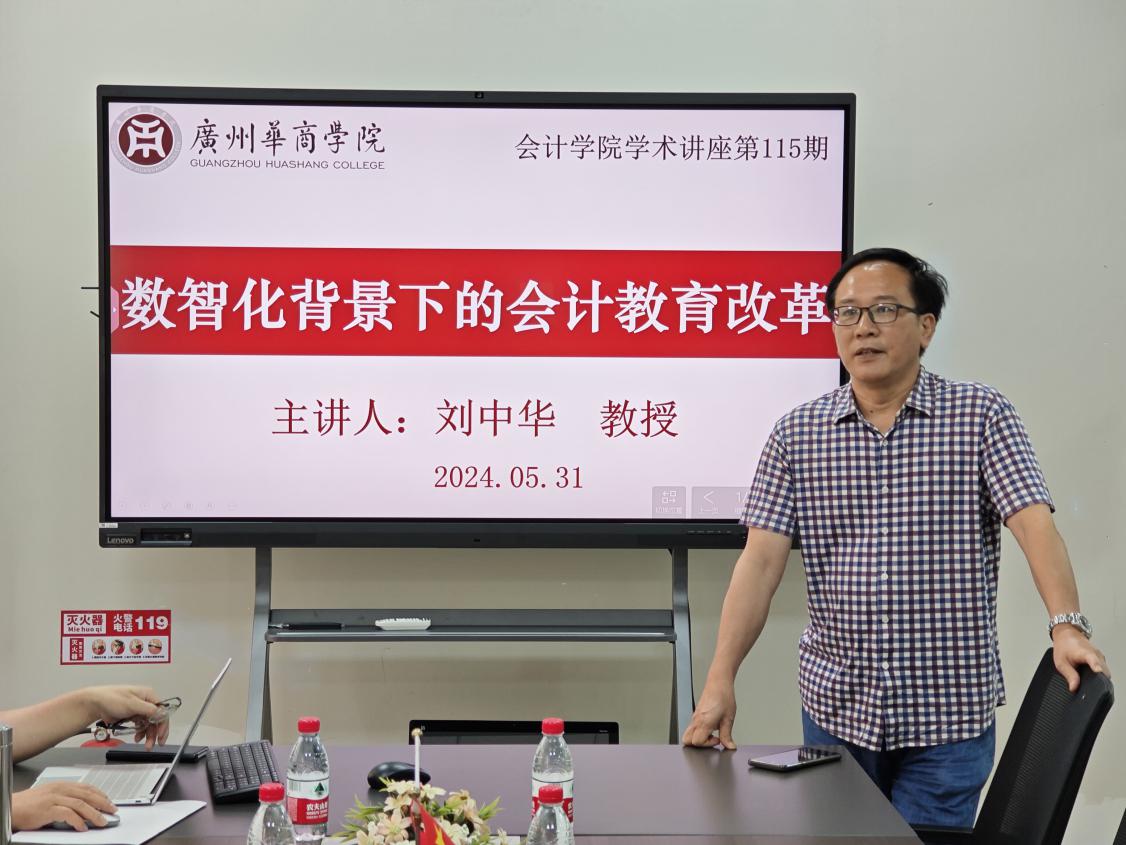 为进一步了解数字经济时代对会计工作和会计人才培养的新要求,推进会计教育课程体系改革,创新核心课程建设,5月31日上午,教育部会计学专业教学指导委员会委员、广东外语外贸大学williamhill英国官网原院长刘中华教授在williamhill英国官网会议室作了题为“数智化背景下的会计教育改革”讲座,williamhill英国官网领导班子成员,各教学系、教研室负责人以及各课程负责人参加了本次讲座,由刘善球副院长主持。