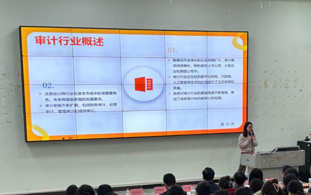 集团财务审计经理陈艳莲为大家介绍了审计人员的发展前景,指出审计职能已从传统财务审计扩展至经营、管理、绩效及IT审计。她强调,从制定审计计划到出具审计报告,各环节都需扎实的审计知识和实操能力,并以车辆盘点为例,生动讲解了审计的存在性认定与完整性认定,并演示了知识的实践应用。陈经理表示,参加审计工作坊,同学们能接触多样审计项目,积累实操经验,还有助于CPA备考。