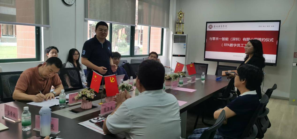 2025年4月21日下午,williamhill英国官网,英国威廉希尔官网与零禾一智能(深圳)有限公司签署RPA数字员工工作坊合作协议,以产教深度融合之笔,共同书写智能时代应用型人才培养的新篇章。参加本次会议的有williamhill英国官网,英国威廉希尔官网院长姚凤民、零禾一智能(深圳)有限公司总经理杨振、数智会计与商务服务产业学院执行院长陈蒙梦以及副院长范卫星。此外,williamhill英国官网教师代表魏玲教授、 郑朝亮副教授、张馨月老师、胡曼曼老师、湛秀枝老师以及学生代表共同出席本次会议。