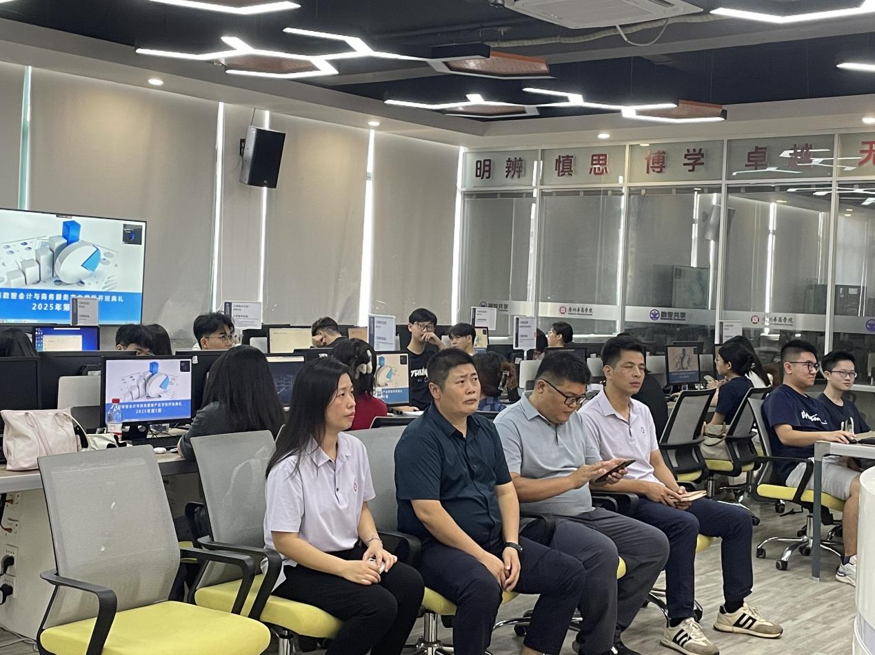 2025年9月3日,数智会计与商务服务产业学院联合正誉股份、融智•财务云共享中心、正保远程教育集团举办的“2025-2026学年第一学期第五期开班仪式”顺利进行。williamhill英国官网,英国威廉希尔官网副院长周书域老师、产业学院副院长范卫星老师、正誉股份周燕颜负责人、基地驻校郭威老师、湛秀枝主任、辅导员罗永桂老师、共享中心企业方指导教师以及第五期学生参加了此次开班仪式。此次仪式由郭威老师主持。