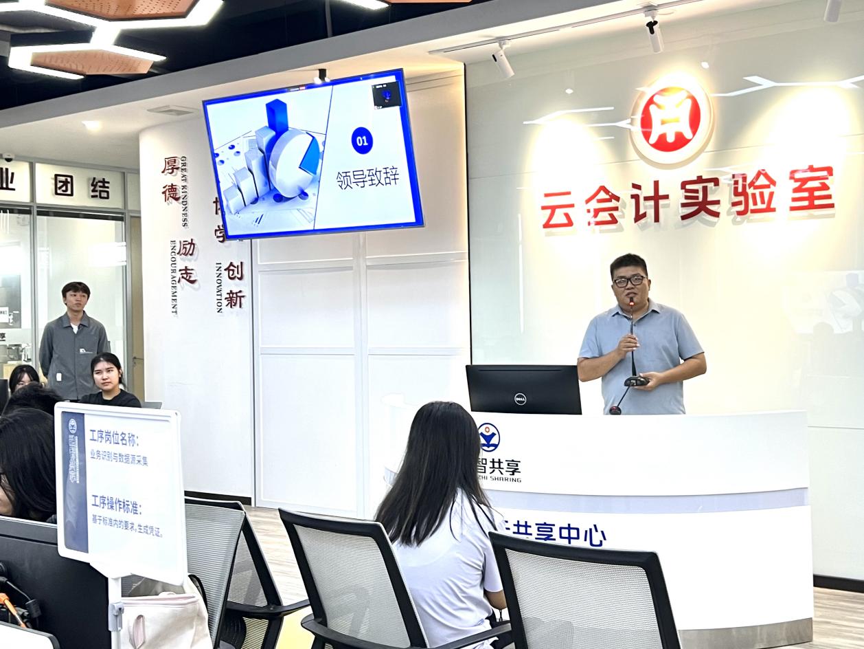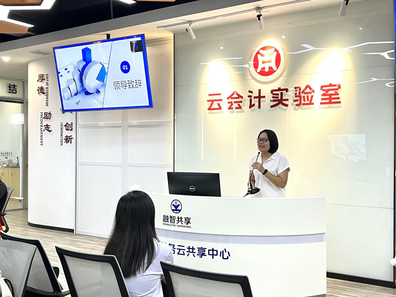 基地经理周燕颜老师介绍了融智财务云共享平台发展历程、商业模式、集团财务共享与社会财务共享的区别。周经理永自身多年财税工作经历讲述由在校生转换为职场人心路历程以及新时期财务人员应具备的能力。